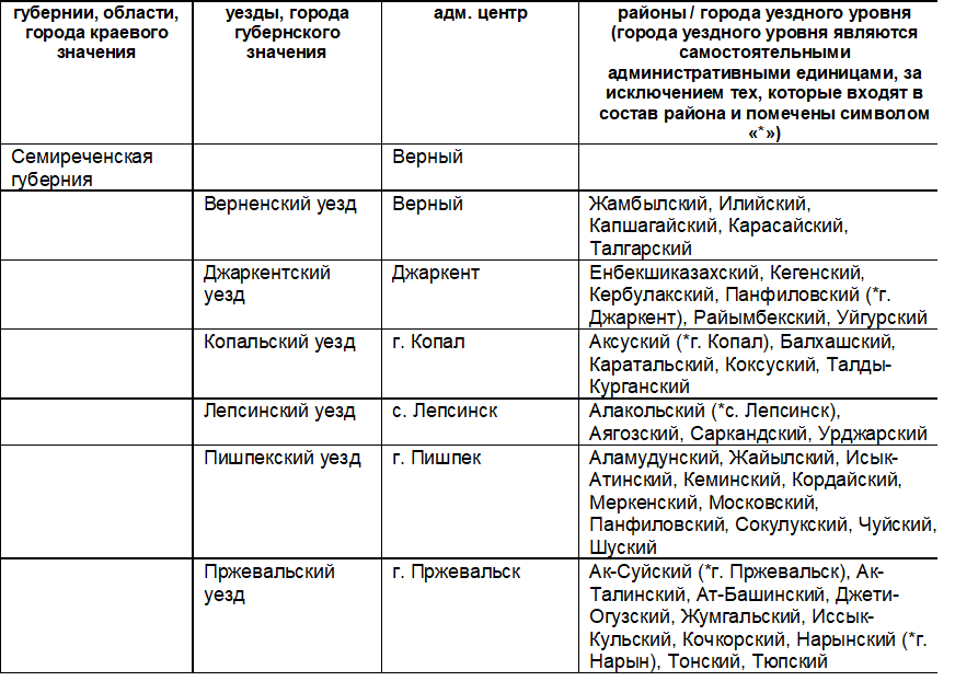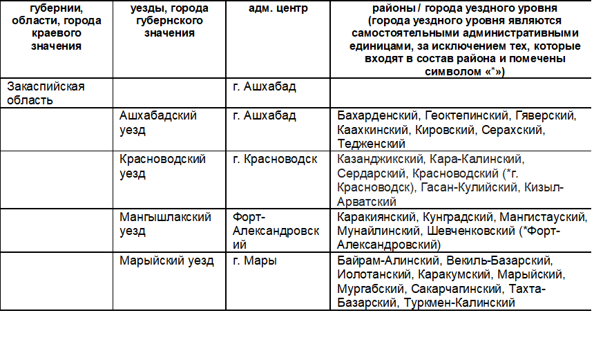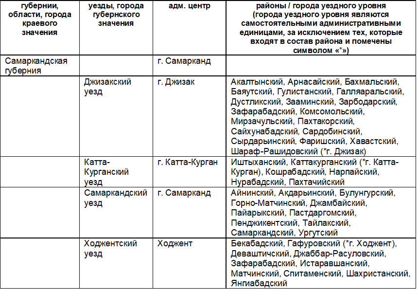 ГУБЕРНИИ СРЕДНЕАЗИАТСКОГО КРАЯ: